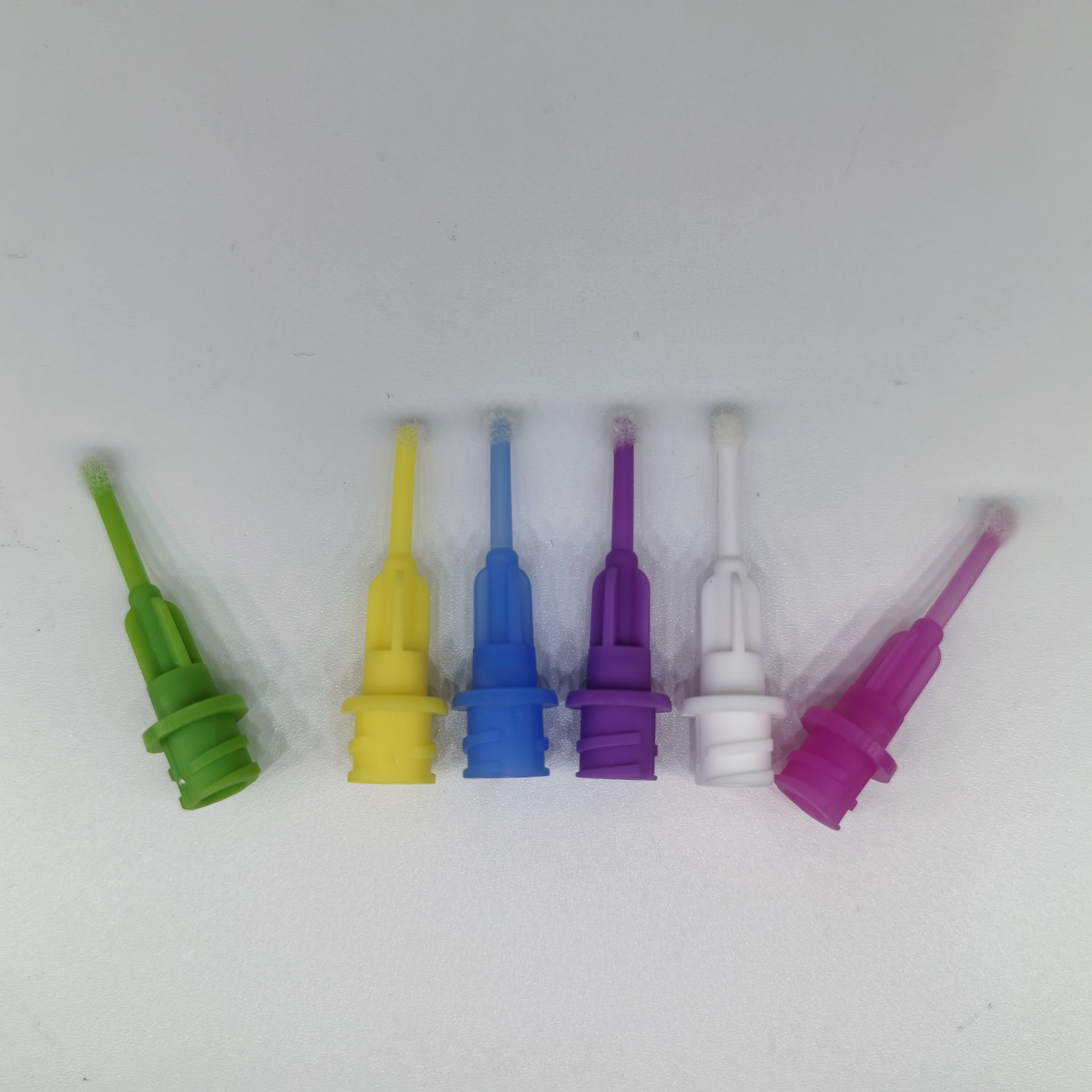 Esta punta aplicadora flocada para irrigación dental presenta un extremo frontal flocado. Más suave que las puntas rígidas, entra en contacto suavemente con la mucosa oral y los dientes para evitar rasguños. Mientras tanto, el material flocado absorbe el medicamento líquido para una aplicación más uniforme. Su conector trasero es compatible con la mayoría de los dispensadores de material dental, lo que permite una administración precisa de líquidos de irrigación, adhesivos y otros materiales. La punta delgada llega a áreas estrechas como espacios y cavidades interdentales, mejorando la precisión operativa.