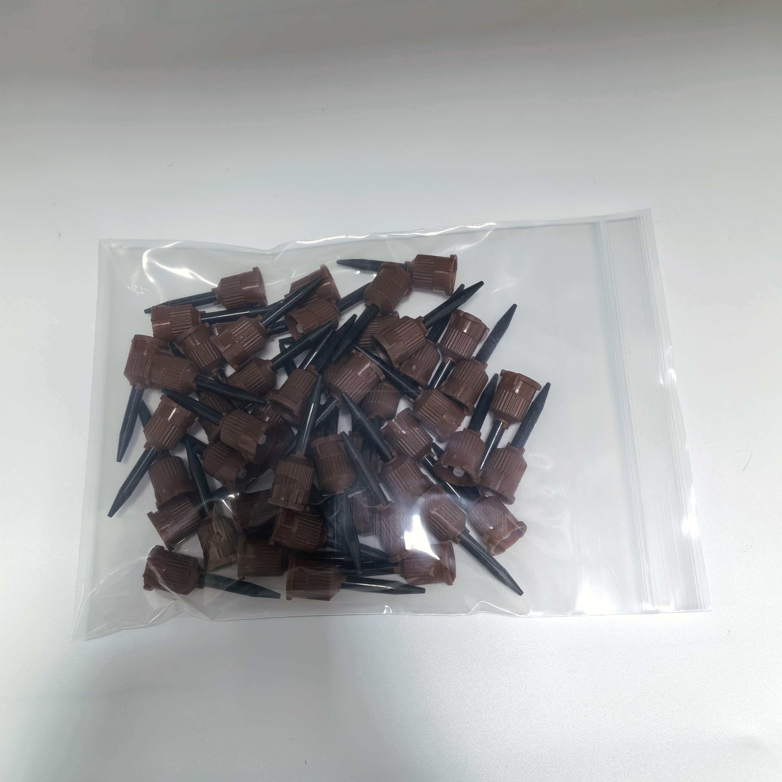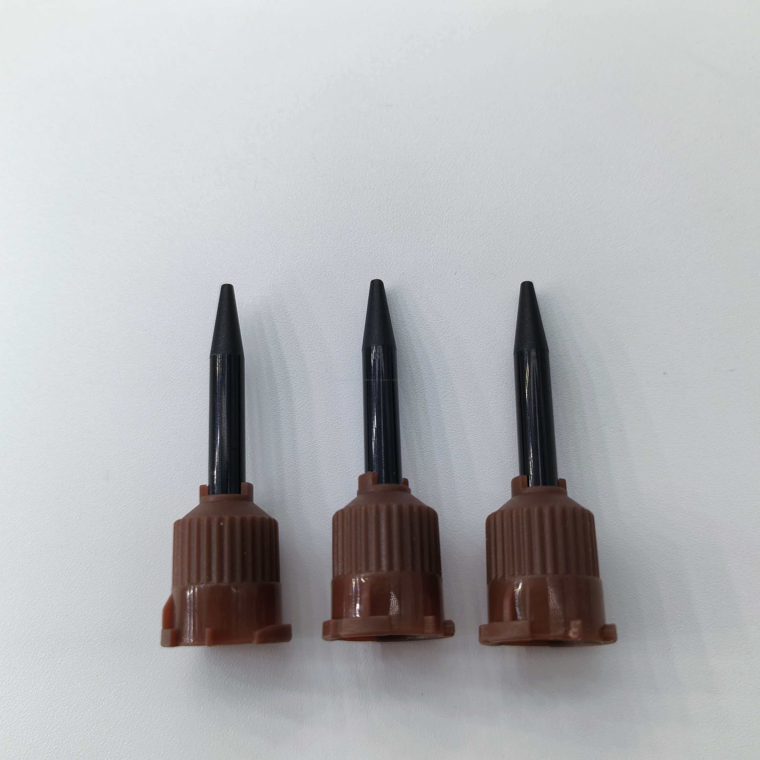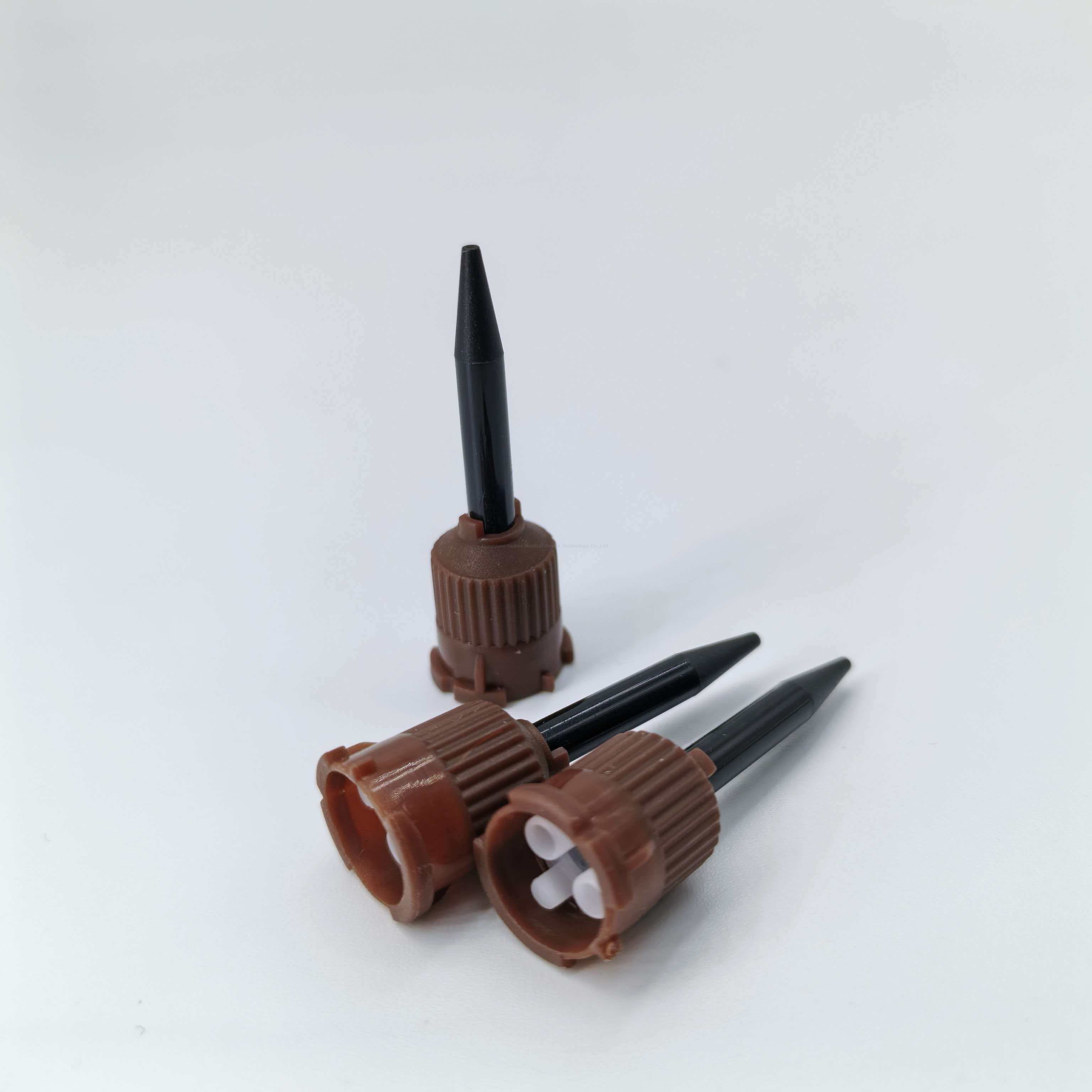 El tubo está fabricado con materiales estériles de grado médico, presenta resistencia a la corrosión y estanqueidad, y es compatible con diversos agentes dentales, como resinas y adhesivos. El diseño liviano y fácil de sostener reduce la dificultad operativa y la aplicación de un solo uso elimina los riesgos de infección cruzada.
