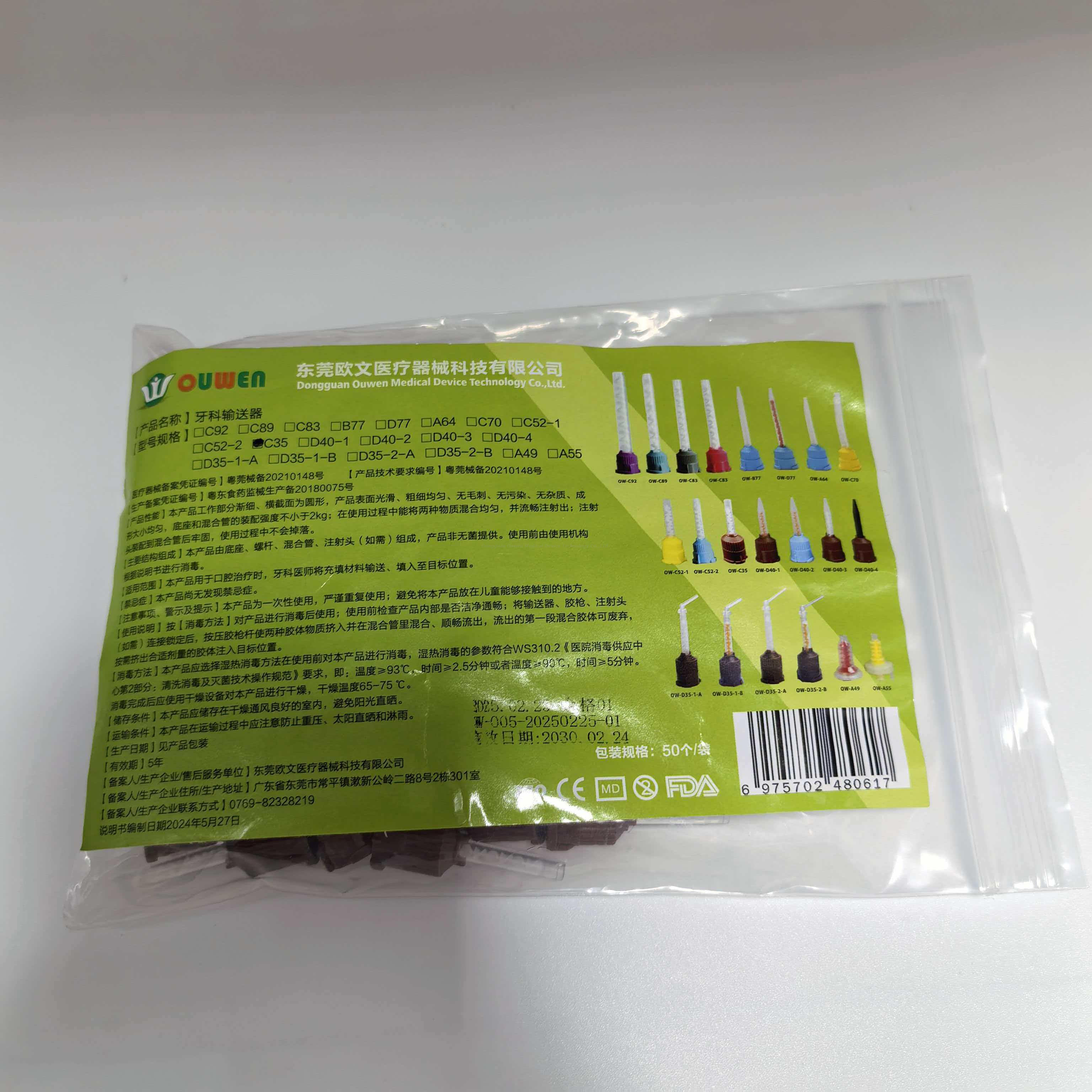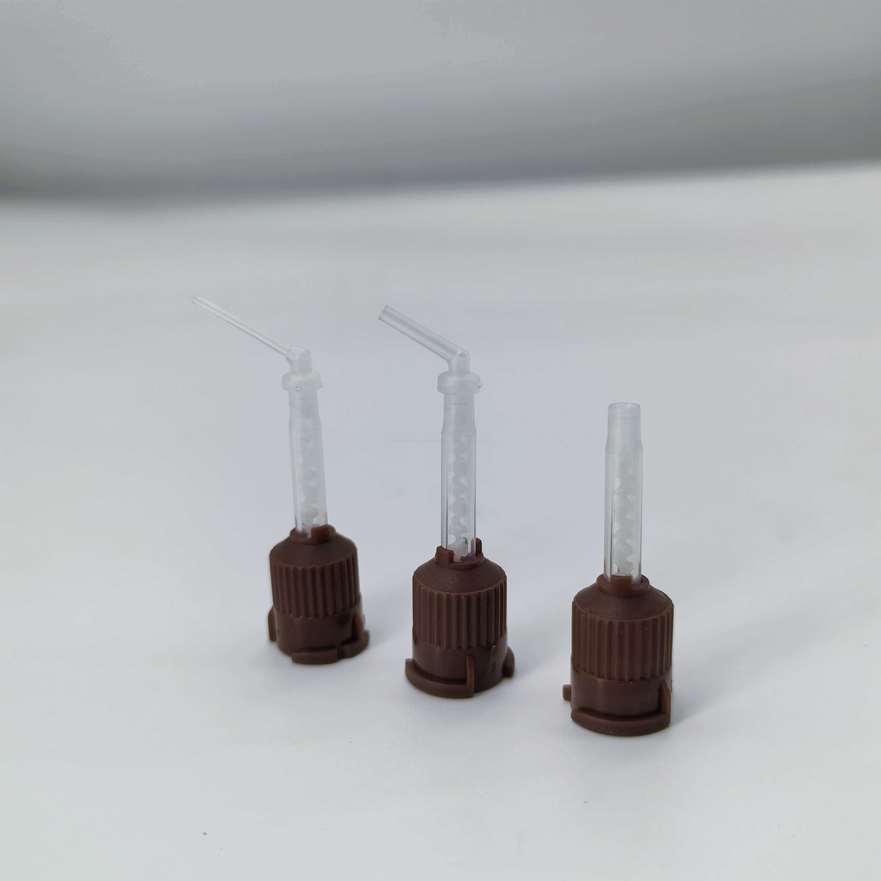 El tubo está fabricado con materiales estériles de grado médico, presenta resistencia a la corrosión y estanqueidad, y es compatible con diversos agentes dentales, como resinas y adhesivos. El diseño liviano y fácil de sostener reduce la dificultad operativa y la aplicación de un solo uso elimina los riesgos de infección cruzada.